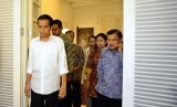 REPUBLIKA.CO.ID, JAKARTA -- Presiden dan Wakil Presiden terpilih periode 2014-2019, Joko Widodo dan Jusuf Kalla berbicara kepada media usai rapat tertutup di Rumah Transisi, Jakarta, Kamis (28/8).