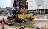 REPUBLIKA.CO.ID, JAKARTA -- Alat berat sedang beroperasi pada proyek pembangunan Mass Rapid Transport (MRT) di kawasan Thamrin, Jakarta,Jumat (29/8).