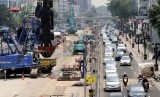 Alat berat sedang beroperasi pada proyek pembangunan Mass Rapid Transport (MRT) di kawasan Thamrin, Jakarta,Jumat (29/8). (Republika/Tahta Aidilla)