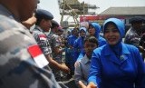 Keluarga prajurit menyalami sejumlah perwakilan Satgas Rim of The Pacific (Rimpac) 2014 saat tiba di Dermaga Kolinlamil, Tanjung Priok, Jakarta Utara, Selasa (2/9). (Republika/Rakhmawaty La'lang)
