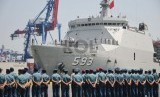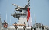 Upacara penyambutan kedatangan KRI Banda Aceh-593 yang merupakan bagian dari Satgas Rim of The Pacific (Rimpac) 2014 di Dermaga Kolinlamil, Tanjung Priok, Jakarta Utara, Selasa (2/9). (Republika/Rakhmawaty La'lang)