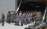 Kontingen satuan tugas multi korps menuruni KRI Banda Aceh-593 usai upacara penyambutan Satgas Rim of The Pacific (Rimpac) 2014 di Dermaga Kolinlamil, Tanjung Priok, Jakarta Utara, Selasa (2/9). (Republika/Rakhmawaty La'lang)