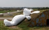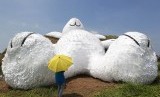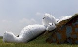 REPUBLIKA.CO.ID, TAIWAN -- Seekor patung kelinci raksasa dengan panjang 25,3 meter yang dirancang oleh seniman Belanda Florentijn Hofman ditampilkan di sebuah hanggar tua pesawat terbang, Taoyuan, Taiwan, Rabu (3/9).