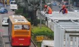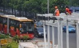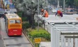REPUBLIKA.CO.ID, JAKARTA -- Petugas menyelesaikan proyek pelebaran Halte Sarinah di Jalan MH Thmarin, Jakarta Pusat, Jumat (5/9).