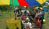 Sejumlah anak mengikuti workshop penanaman bibit sayuran penyuluhan Hidden Park di Ruang Terbuka Hijau (RTH) Taman Tanjung, Jakarta Selatan, Ahad (7/9). (Republika/Raisan Al Farisi)