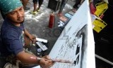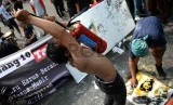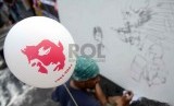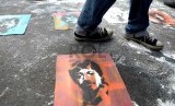 REPUBLIKA.CO.ID, JAKARTA -- Komite Aksi Solidaritas untuk Munir (Kasum) melukis stensil wajah munir saat peringatan 10 tahun kasus pembunuhan aktivis HAM Munir di Bundaran HI, Jakarta, Ahad (7/9).