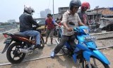 REPUBLIKA.CO.ID, JAKARTA -- Warga mengatur lalulintas pengendara yang melintasi perlintasan rel kereta api yang tidak dilengakapi palang pintu di kawasan Tambora, Jakarta Barat, Rabu (10/9).