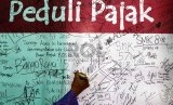 REPUBLIKA.CO.ID, JAKARTA -- Sejumlah siswa membubuhkan tanda tangan Generasi Muda Peduli Pajak pada acara High School Tax Festival di Kantor Pelayanan Pajak (KPP) Pratama Pasar Minggu, Jakarta Selatan, Kamis (11/9).
