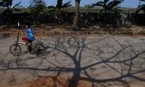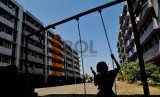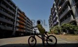 REPUBLIKA.CO.ID, JAKARTA -- Seorang anak bermain sepeda di area rusun Marunda, Cilincing, Jakarta Utara, Kamis (11/9).