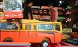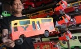REPUBLIKA.CO.ID, JAKARTA -- Seorang pembeli melihat-lihat mainan mobil kayu yang dijual di Jalan Raya Pasar Minggu, Jakarta, Jumat (12/9).