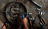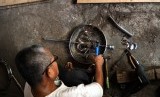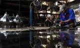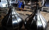 REPUBLIKA.CO.ID, JAKARTA -- Pekerja mengerjakan pembuatan kubah masjid di Jakarta, Ahad (14/9).