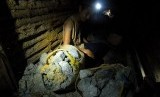 Warga menggali bongkahan emas di dalam lubang Desa Pasirmukti, Kecamatan Cineam, Kabupaten Tasikmalaya, Jawa Barat, Minggu (14/9). Sebanyak 24 lubang tambang emas dengan jumlah penambang 3-10 orang per lubang dengan bentuk lubang vertikal dan berbentuk gua (horizontal). Penambang mengadu nasib dan mempertaruhkan keselamatan didalam lubang untuk menggumpulkan bongkahan 40 kilogram batu mengandung ratusan gram logam emas per harinya.