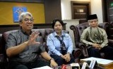 (dari kiri) Panitia Seleksi (Pansel) pimpinan KPK Imam B. Prasodjo, Harkristuti Harkrisnowo, dan Abdullah Hehamahua memberikan keterangan pers terkait nama hasil seleksi calon pimpinan KPK di Gedung Kemenkumham, Jakarta, Senin (15/9). (Republika/ Wihdan)