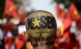 REPUBLIKA.CO.ID, JAKARTA -- Ratusan buruh yang tergabung dalam Konfederasi Aliansi Serikat Buruh Indonesia (KASBI) berunjuk rasa di kawasan Bundaran HI, Jakarta, Senin (15/9).