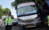 Bus Kopaja dirusak warga setelah menabrak seorang pengendara sepeda motor. Tidak ada korban jiwa dalam peristiwa itu.
