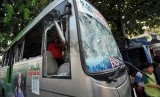REPUBLIKA.CO.ID, JAKARTA -- Sebuah bus angkutan umum Kopaja P-20 dirusak warga di Mampang, Jakarta Selatan, Kamis (18/9).