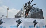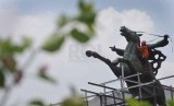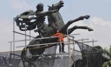 REPUBLIKA.CO.ID, JAKARTA -- Petugas Balai Konservasi melakukan perawatan pada Patung Diponegoro di pelataran Monas, Jakarta Pusat, Jumat (19/9).