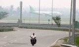 REPUBLIKA.CO.ID, DELI SERDANG -- Sebuah pesawat menembus kabut asap saat akan mendarat di Bandara Internasional Kualanamu Kabupaten Deli Serdang, Sumut, Jumat (19/9).