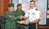 Kepala Staf Kostrad Mayjen TNI Setyo Sularso didampingi Asisten Kaskostrad menerima kunjungan kehormatan MG Charles Flynn, The Comanding General of United States Army 25th Infantery Division di Makostrad Jakarta, Senin (22/9). (dok.Penkostrad)