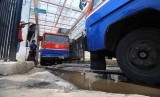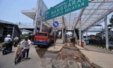 REPUBLIKA.CO.ID, JAKARTA -- Kondisi aspal perlintasan yang rusak dan tergenang air di Terminal Manggarai, Jakarta Selatan, Selasa (23/9).