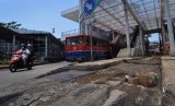 Meski belum genap setahun diresmikan, aspal yang berada di jalur bus sudah banyak yang rusak.