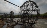 Sejumlah kincir air dibuat petani secara swadaya di Sungai Citanduy, Kampung Sukasirna, Manggung Jaya, Rajapolah, Kabupaten Tasikmalaya, Jawa Barat, Jumat (3/10). (Antara/Adeng Bustomi)