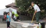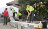 REPUBLIKA.CO.ID, JAKARTA -- Warga kelurahan Kebon Kacang membersihkan area masjid yang digunakan untuk menyembelih hewan kurban saat perayaan hari raya Idul Adha di Masjid Jami Said Na’Um, Tanah Abang,Jakarta Pusat, Ahad (5/10).