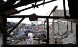 REPUBLIKA.CO.ID, JAKARTA -- Warga mencari barang yang tersisa usai kebakaran melanda pemukiman penduduk di Plumpang,Jakarta Utara, Senin (6/10).