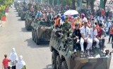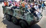 REPUBLIKA.CO.ID, SURABAYA -- Ratusan warga menaiki kendaraan taktis tempur Anoa milik TNI AD, saat Pameran Alutsista di Makodam V/ Brawijaya Surabaya, Rabu (8/10).