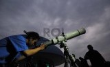 Petugas Planetarium menyeting alat teropong pengamatan terjadinya Gerhana Bulan di Planetarium Taman Ismail Marzuki, Jakarta Pusat, Rabu (8/10). (Republika/Rakhmawaty La'lang)