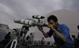 REPUBLIKA.CO.ID, JAKARTA -- Petugas Planetarium menyeting alat teropong pengamatan terjadinya Gerhana Bulan di Planetarium Taman Ismail Marzuki, Jakarta Pusat, Rabu (8/10).