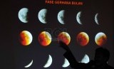 Narasumber Planetarium Cecep Nurhendaya memaparkan mengenai proses terjadinya Gerhana Bulan di Planetarium Taman Ismail Marzuki, Jakarta Pusatm, Rabu (8/10). (Republika/Rakhmawaty La'lang)