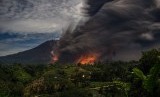 REPUBLIKA.CO.ID, KARO -- Lava pijar disertai debu vulkanik meluncur di lereng Gunung Sinabung, tampak dari Desa Tiga Pancur, Karo, Sumut, Kamis (9/10) dini hari.
