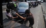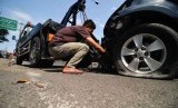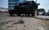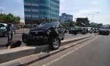 REPUBLIKA.CO.ID, JAKARTA -- Sebuah mobil mini bus dengan nomor polisi B 1102 SJ menabrak tiang pembatas di Jalan Tendean, Jakarta Pusat, Jumat (10/10).