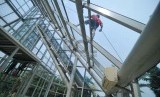 REPUBLIKA.CO.ID, JAKARTA -- Pekerja melakukan proses revitalisasi rumah kaca yang berada di Taman Menteng, Jakarta Pusat, Ahad (12/10).