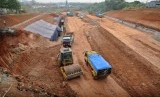 REPUBLIKA.CO.ID, DEPOK -- Pekerja menyelesaikan pembangunan proyek Tol Cijago, di Jalan Juanda, Depok, Jawa Barat, Senin (13/10).