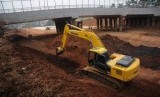 Pekerja dibantu alat berat menyelesaikan pembangunan proyek Tol Cijago, di Jalan Juanda, Depok, Jawa Barat, Senin (13/10). (Antara/Indrianto Eko Suwarso)