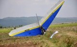 Seorang peserta Gantole Internasional Telomoyo Cup 2014 gagal mendarat dengan sempurna diarea persawahan wisata Kampoeng Rawa, Ambarawa, Kabupaten Semarang, Jateng, Senin (13/10). (Antara/Aloysius Jarot Nugroho)