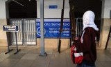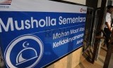 REPUBLIKA.CO.ID, JAKARTA -- Warga melintas di depan Mushola Stasiun Manggarai, Jakarta Selatan, Senin (13/10).