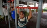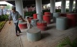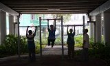 REPUBLIKA.CO.ID, JAKARTA -- Sejumlah warga menikmati fasilitas olahraga taman interaktif di kolong jalan layang Klender, Jakarta Timur, Senin (13/10).