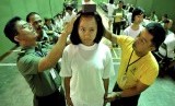Petugas melakukan pemeriksaan kesehatan mata seorang calon bintara prajurit karir korps wanita angkatan darat (Kowad), di Makodam IV Diponegoro, di Semarang, Jateng, Selasa (14/10). (Antara/R. Rekotomo)