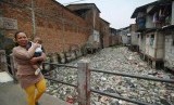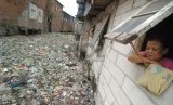 REPUBLIKA.CO.ID, JAKARTA -- Warga dari balik jendela memperhatikan sampah yang menggenangi sungai yang berada di Muara Baru, Jakarta Utara, Rabu (15/10).