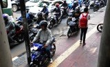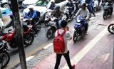 REPUBLIKA.CO.ID, JAKARTA -- Pengendara roda dua melintasi jalur khusus bagi pejalan kaki di jalan Sudirman, Jakarta Pusat, Kamis (16/10).