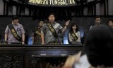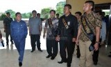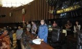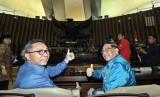 REPUBLIKA.CO.ID, JAKARTA -- Ketua MPR Zulkifli Hasan didampingi dua Wakil Ketua MPR, EE Mangindaan dan Oesman Sapta Odang, memantau langsung kegiatan gladi kotor pelantikan Joko Widodo-Jusuf Kalla sebagai Presiden dan Wakil Presiden terpilih di Gedung MPR, Senayan, Jakarta, Jumat (17/10).