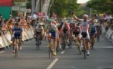 REPUBLIKA.CO.ID, BANYUWANGI -- Pebalap Mehdi Sohrabi (angkat dua tangan) melakukan selebrasi dalam etape keempat "International Tour De Banyuwangi Ijen" (ITdBI), di Banyuwangi, Jawa Timur, Ahad (19/10).