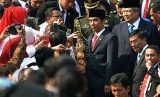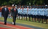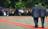 REPUBLIKA.CO.ID, JAKARTA -- Presiden Joko Widodo bersama Presiden RI Ke-6 Susilo Bambang Yudhoyono mengikuti upacara militer penyambutan Presiden di Istana Merdeka, Jakarta, Senin (20/10).