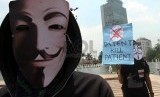 REPUBLIKA.CO.ID, JAKARTA -- Massa dari Jaringan Aksi Perubahan Indonesia melakukan unjuk rasa di kawasan Bundaran Hotel Indonesia, Jakarta Pusat, Selasa (21/10).