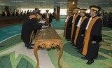 REPUBLIKA.CO.ID, JAKARTA -- Empat Hakim Agung Baru yakni Is Sudaryono, Purwosusilo, Sudrajat Dimyati dan Amran Suadi, diambil sumpahnya pada acara pengambilan sumpah jabatan dan pelantikan empat hakim agung oleh Ketua MA M. Hatta Ali di Ruang Sidang Utama Sekretariat Mahkamah Agung, Jakarta, Selasa (21/10).