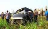 REPUBLIKA.CO.ID, CIREBON -- Sejumlah petugas melakukan olah kejadian perkara di lokasi terjadinya tabrakan antara mini bus dan kereta api Cirebon Ekspres di perlintasan tanpa palang pintu desa Mundu, Kabupaten Cirebon, Jawa Barat, Rabu (22/10).