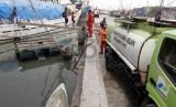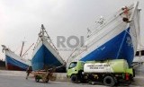 REPUBLIKA.CO.ID, JAKARTA -- Sebuah truk tanki Pertamina mengisi solar ke kapal di Pelabuhan Sunda Kelapa, Jakarta, Kamis (23/10).